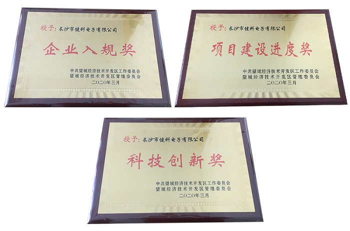 陽春三月,春風(fēng)送暖,長沙市健科電子有限公司董事長黃衛(wèi)華先生受望城經(jīng)開區(qū)邀約,于3月19日參加經(jīng)開區(qū)管委會在雷鋒大劇院舉辦的“大干一百天實現(xiàn)雙過半”競賽活動動員暨2020年經(jīng)濟工作會議。在此次大會上,長沙健科榮獲“項目建設(shè)進度獎”、“科技創(chuàng)新獎”、“企業(yè)入規(guī)獎”三項榮譽獎項。