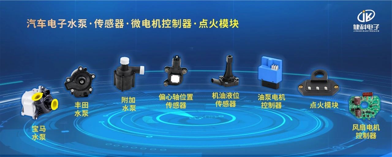 健科電子目前有深圳和長沙兩處生產(chǎn)基地,公司一直專注汽車電子相關(guān)產(chǎn)品的技術(shù)研發(fā)及產(chǎn)業(yè)化,為全球OE及售后市場提供多樣式、定制化的汽車電子產(chǎn)品。 健科電子水泵、傳感器、點火模塊都有多款產(chǎn)品適用于日韓德系車,這次我們展示了豐田水泵WPT190和G902047031,寶馬水泵11517632426,奔馳水泵A2048350364;傳感器12617607910,03C907660H,11377524879, 11377527016;控制器模塊1K0906093K, 253854D900以及點火模塊J121,J152 , 8962135020, 2202060A21等產(chǎn)品。
